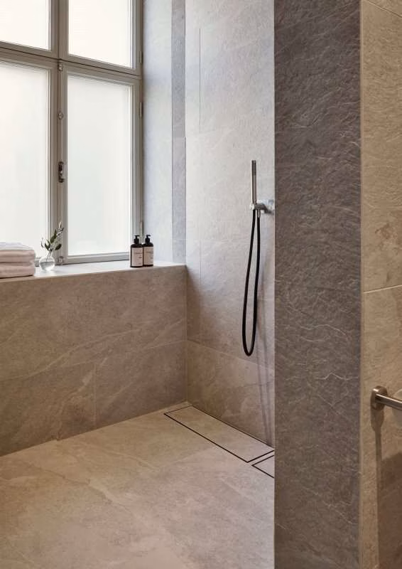 En stilren linjegolvbrunn som anpassar sig till interiören. Snabb, och enkel installation.