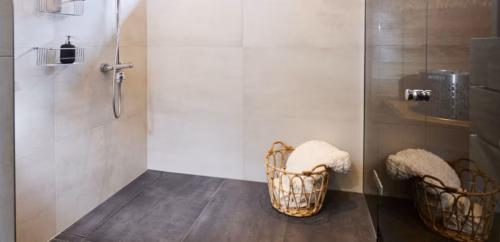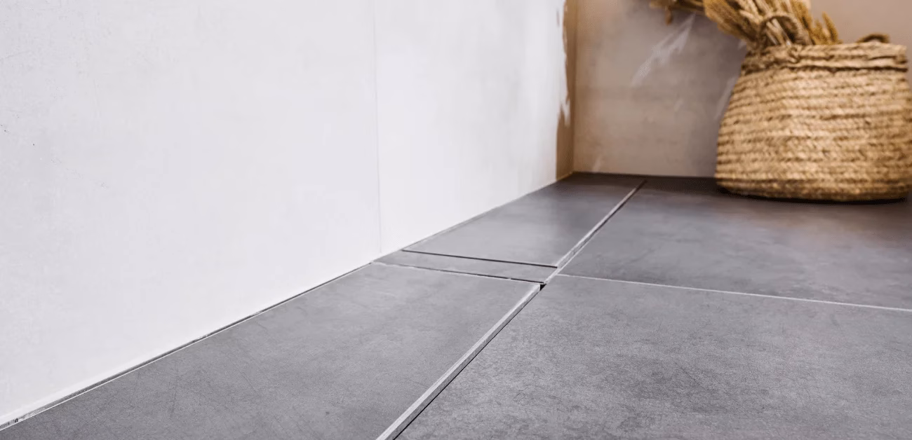 Familjen Perko ville ha ett badrum med stora, eleganta klinkerplattor. För att uppnå en enhetlig och harmonisk design valde de Vieser Line, en golvbrunnslösning som uppfyllde alla deras krav.
