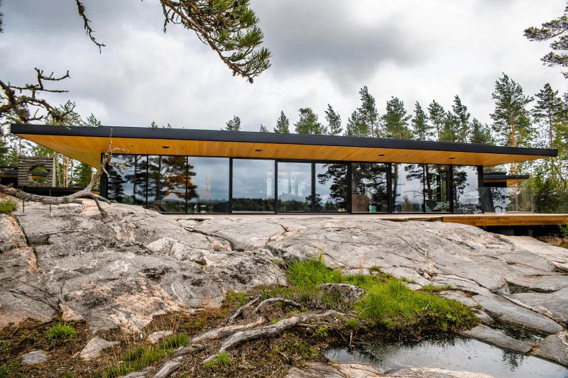 På en klippig tomt vid havet i Ingå finns nu en bostadshelhet som består av fem separata byggnader. Husprojektet presenterades nyligen i TV-programmet Design by Lauri med Lauri Ylönen som programledare. Paret ville ha ett hus med minimalistisk design, och det syns verkligen i det harmoniska slutresultatet.