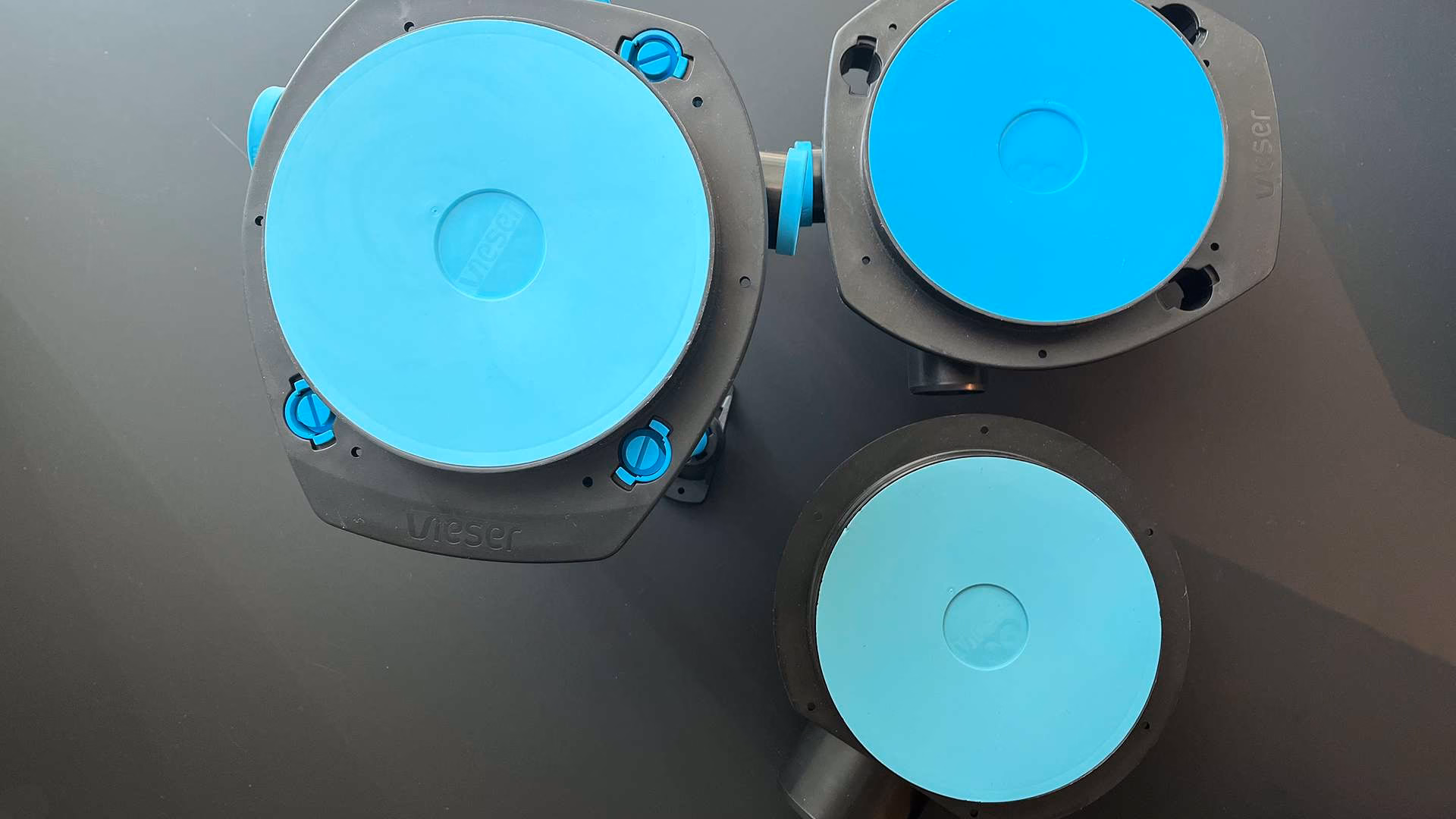 Skyddslocket är en del av varje Viesers golvbrunnar. Locket är avsett för att skydda golvbrunnen vid ingjutning och för att förhindra flytspackel från att komma ner i golvbrunnen. Nu är dessa blå lock, som är bekanta för proffs, tillverkade av återvunnen plast. Den blå färgen finns kvar, men nyansen varierar något beroende på produktionsbatch och den återvunna plasten.