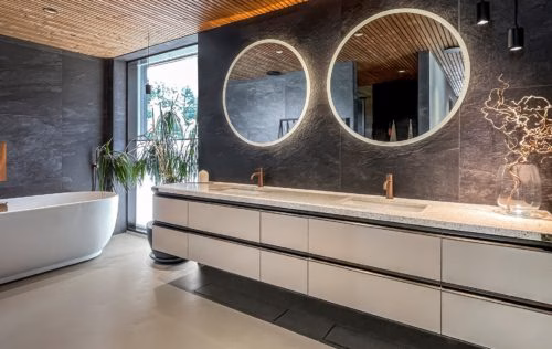 Många av utställningshusen har badrum med Viesers linjära golvbrunn Vieser Line. I badrum med snygga inredningsmaterial, enhetliga golvytor och stora plattor är Vieser Line ett idealiskt val och finns att se både med klinker och hartsbeläggning på mässan. Även en av Viesers senaste innovationer, Vieser Flip, finns med i ett av husen. Du kan läsa mer om husen på Bostadsmässans webbplats.