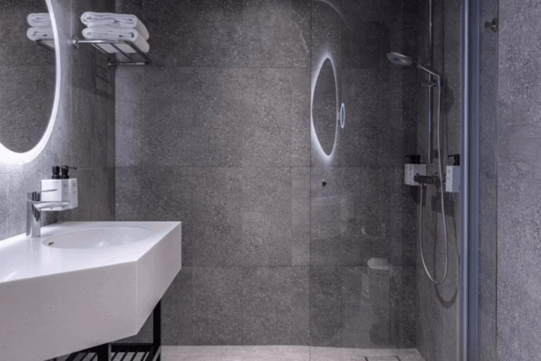 En golvbrunn med designlock fångar blicken i badrummet, men annars kan man glömma bort att den finns där, för Viesers golvbrunnar går snabbt och enkelt att rensa och har ett mycket långt serviceintervall oberoende på var de används.