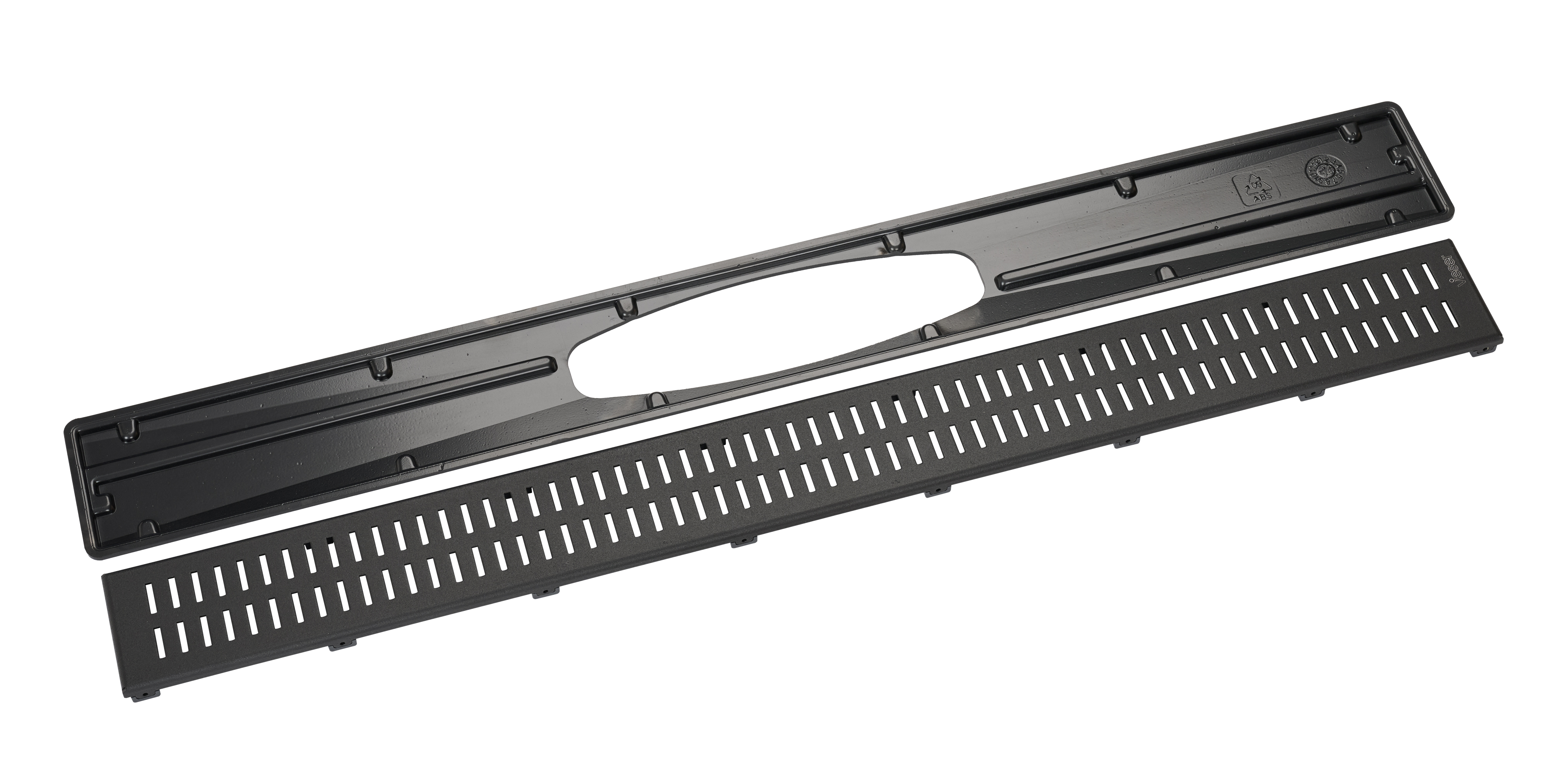 Silen och ramen är en del av linjegolvbrunnssystemet som består av två produkter: golvbrunn och monteringsplatta samt lock och ram.