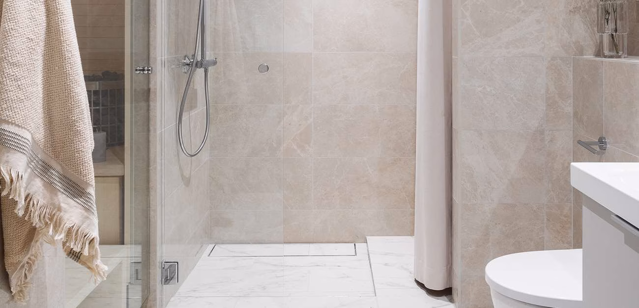 Vieser Line linjära golvbrunnar valdes till de vackra badrummen i Meander, ett unikt bostadsrättsförening beläget nära den idylliska strandpromenaden i Tölö, Helsingfors. De kaklade golvbrunnslocken smälter in smidigt med badrumsinredningen. Vieser Line är en väggnära golvbrunnslösning som kan placeras fritt, vid väggen, mitt på golvet eller flera brevid varandra. Läs mer om Vieser Line.