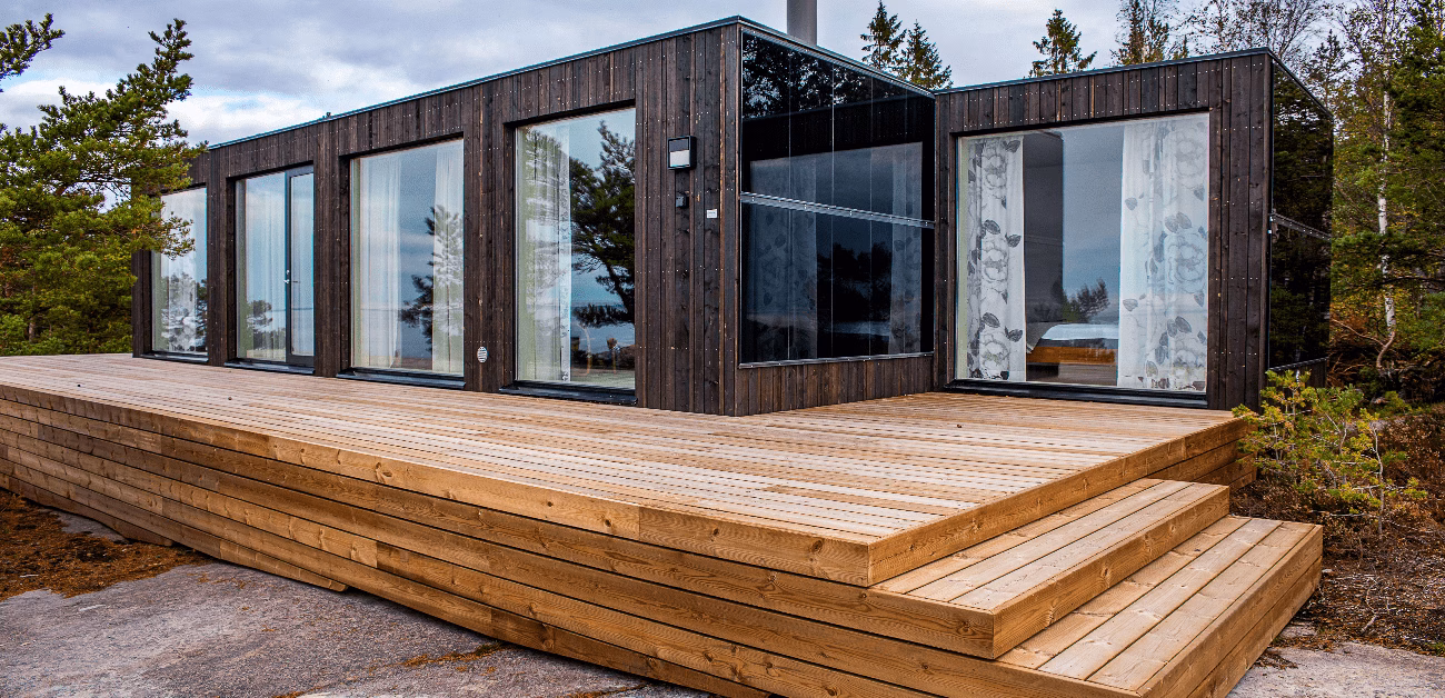 Skådespelarkompisarna Tommi Korpela och Kari Hietalahti förverkligade sin dröm om en fiskestuga vid öppet hav. Värderingar är viktiga för Korpela och Hietalahti. Därför syns ekologi och respekt för naturen i alla lösningar och val av platsen.